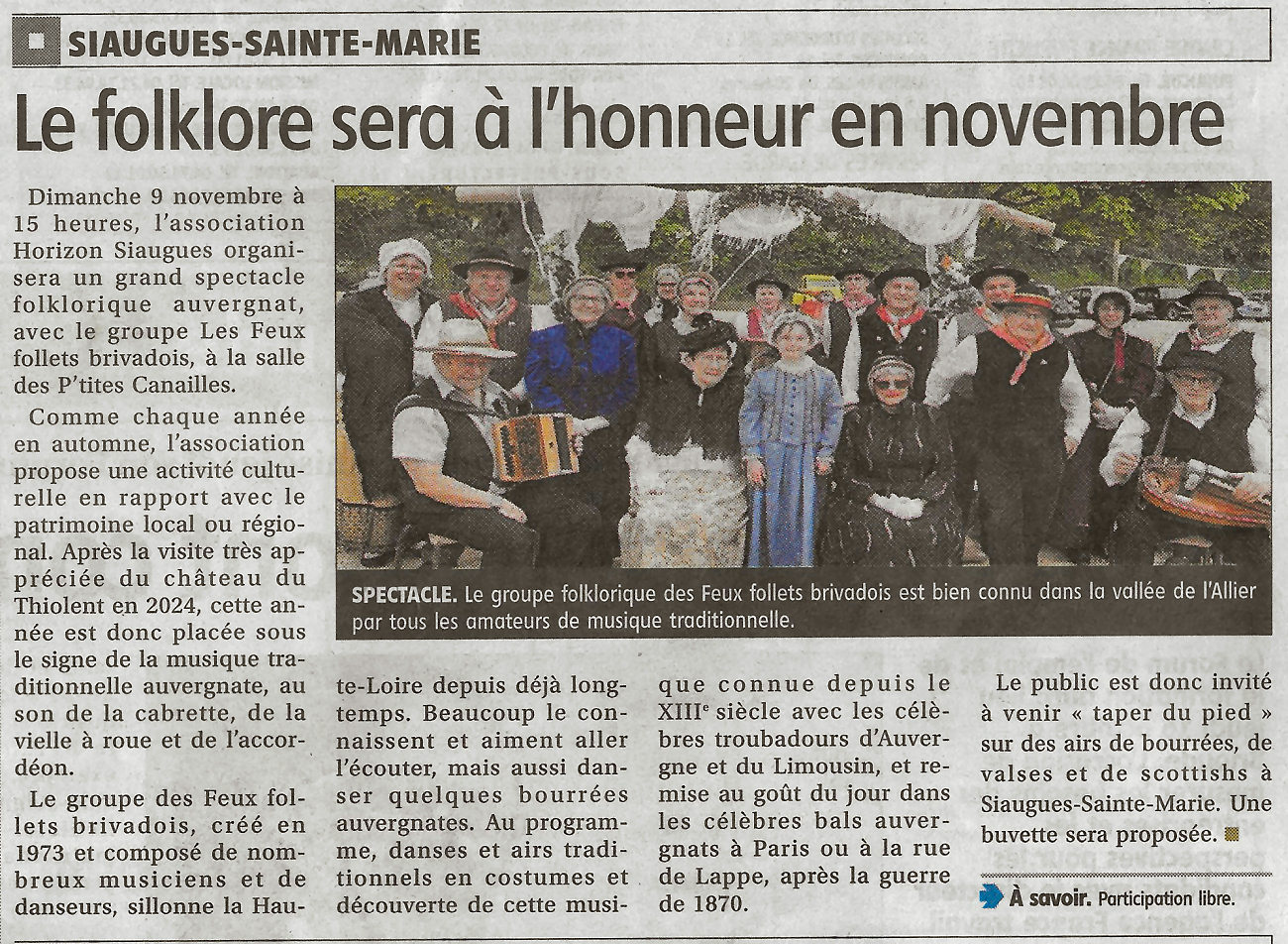 Revue de presse - Tous les articles Se reconnecter 10 membres Connectés : ( personne ) [ 1 2 ] Le folklore sera à l'honneur en novembre - L'Eveil de la Haute Loire 14 octobre 2025 Une réelle réussite pour la cinquième fête du pain - Echo de la tour novembre 2024 Ils ne veulent pas de nouvelles éoliennes - L'Eveil de la Haute Loire 13 juin 2024 Près de 120 randoneurs à la ballade des crêtes d'Horizon Siaugues - L'Eveil de la Haute Loire 15 mai 2024 La région enterre le soutien aux éoliennes - Le Progrès 26 mars 2024 Ailes de Taillars : vers des éoliennes plus grandes et plus puissantes ? - Le Progrès 7 novembre 2023 Eoliennes en Margeride - Il est temps d'agir - La Lozère nouvelle 17mars 2022 Saint Jean de Nay - Le projet éolien toujours dans l'attente - L'Eveil de la Haute Loire Eolien : il y a de l'électricité dans l'air - La Montagne Une soirée autour des croyances populaires - l'Eveil de la Haute Loire [ 1 2 ]